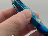 This IKE model pen is designed as an Eye-Dropper and a configurable display chamber that allows you to swap out items by removing the bottom cap. The items in the display chamber appear best when floating in mineral oil as the viscosity helps to slow the movement, leading to endless hours of pen contemplation.